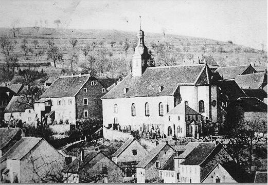 Blick auf die Kath. Pfarrkirche St. Peter vor der letzten Erweiterung 1907